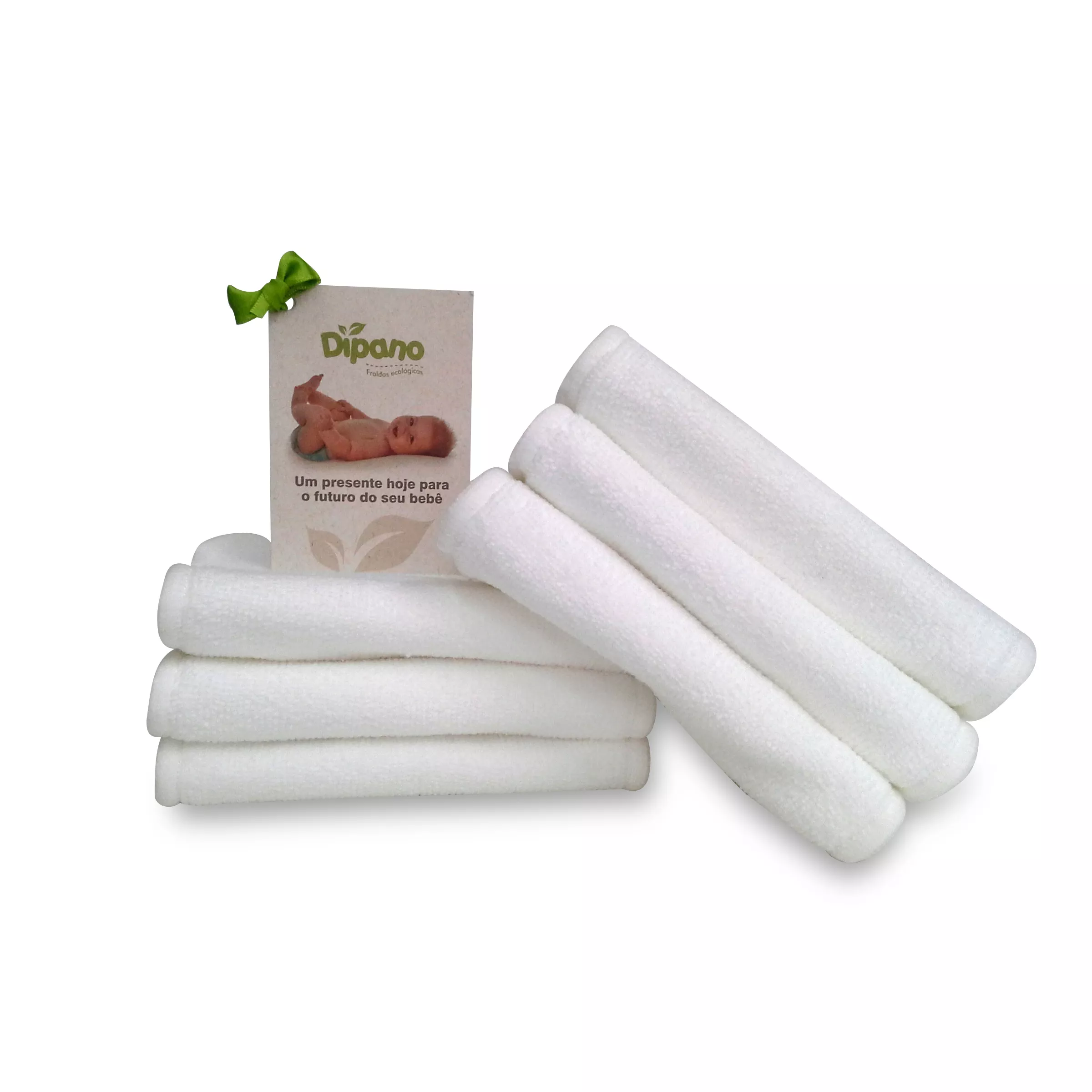 Os Absorventes de Microfibra tem aspecto atoalhado e são potentes. Devem ser usados dentro do bolso da Capa para que não haja contato direto com a pele do bebê, pois irão retirar sua umidade natural.